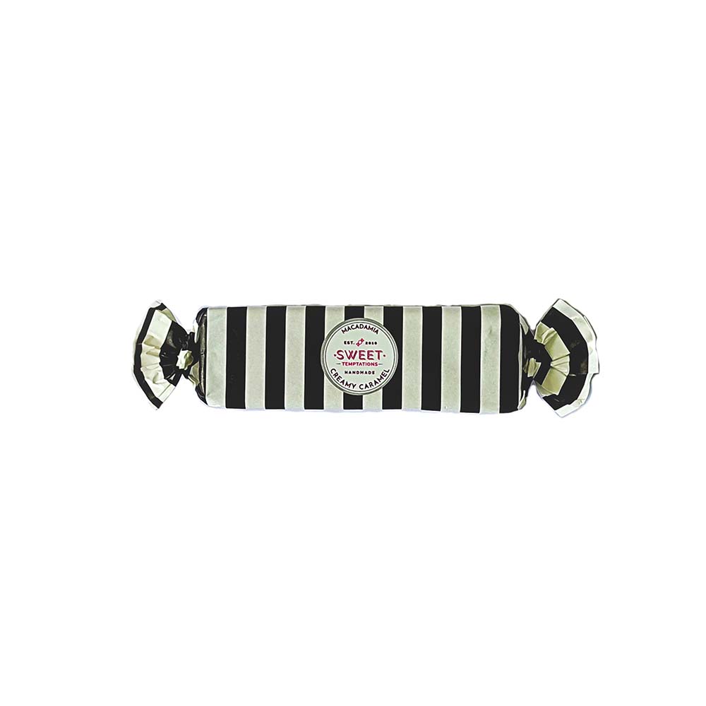 A luxurious blend of buttery toffee and crunchy roasted macadamia nuts, perfectly balanced for a rich, nutty indulgence. Each bite offers smooth sweetness with a satisfying crunch, beautifully presented in a bright candy-striped wrapper that hints at the goodness inside.